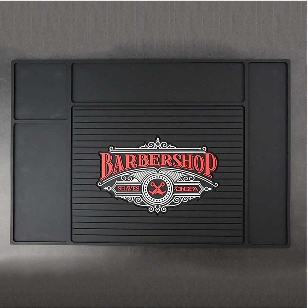 Provides you a soft area to place clippers, trimmer, brushes, scissors and other tools, protect your station and countertop from damages, stains and spills. Keeping table clean. With Different size compartment for tools, Nonslip surface keeps barber tools in place and organized Made from high-quality PVC with good elasticity, good abrasion and water resistance. Heavy duty, durable, and easy to clean, If you have a spill on it, just rinse and air dry. Perfect for Barbers, Bars, Kitchens, Dining Tables, It fits all your needs to a mat.