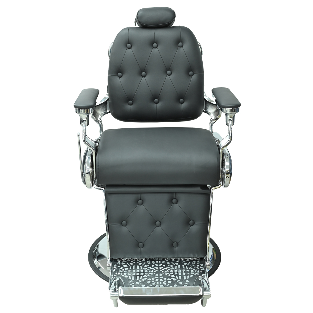 Upgrade your barbershop with the LEGEND Barber Chair in sleek black and silver. This chair combines elegance, durability, and functionality to provide the ultimate seating experience for your clients.