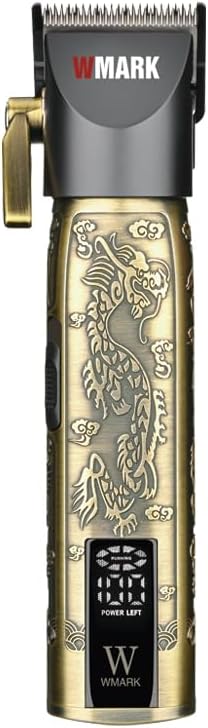 WMARK Professional - High Speed Series 9000rpm Quiet Powerful Motor Hair Clipper Rechargeable Hair Clipper for Men Zinc Alloy Body Barber Detail Trimming Bronze Chinese Dragon NG-2046